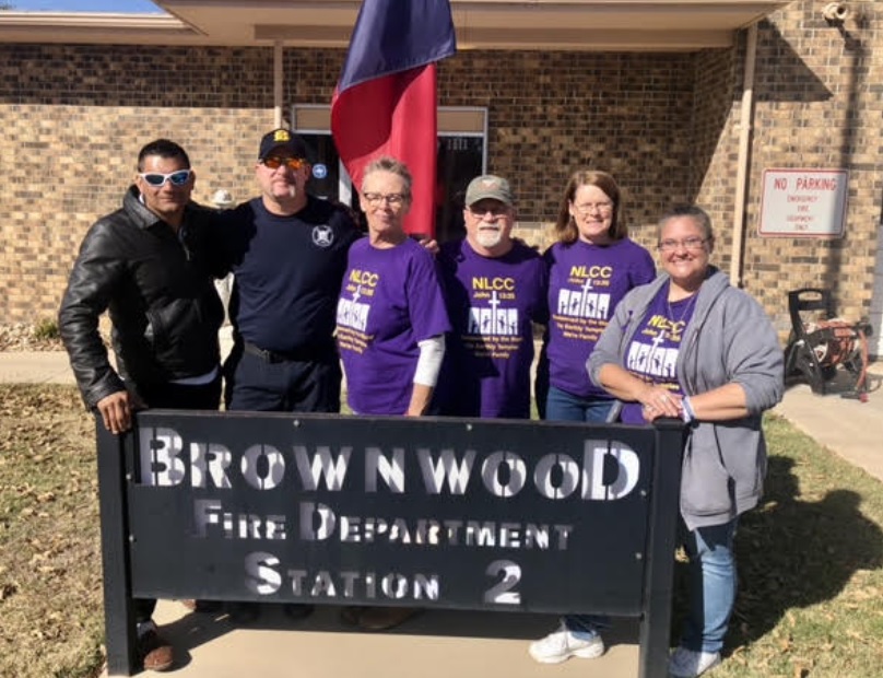 The group started the day at the Lake Brownwood Bridge VFD where we met up with Fire Chief Randy Feight. After presenting him with tokens of appreciation, and had a moment of prayer, they moved on to the Lake Brownwood Lake Patrol where they met new Chief Mark Davis and his team – Donald Batteas, Sam Morrell, & Joshua Holmes. Linda Lemond presented the team with a plaque that she made especially for Lake Patrol.