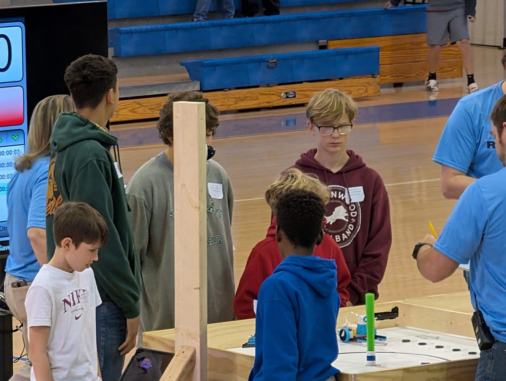 “The teams had to gather objects into their safe zone during an autonomous portion to earn points,” said Cox noting that they were not allowed to “drive” the bot, it must only run a program. “Then, during the driver-controlled portion, they used their bots to place these items in designated spaces on a game mat to score more points.”
