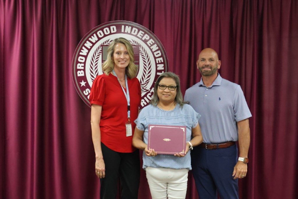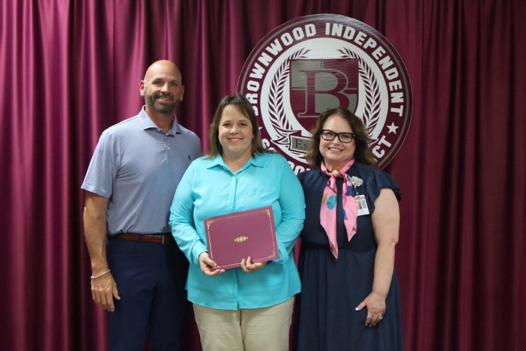 The BISD Spotlight recognizes members of the BISD faculty and staff who go the extra mile to ensure excellence in education for all our students. Spotlight recipients are chosen from peer nominations. May 2025 honorees were East Elementary 3rd Grade teacher Leslie Warren and Brownwood Accelerated High School Parent Liaison Mary Zamarripa. Spotlight honorees are pictured with BISD Trustee Codie Smith, and (top) East Elementary Principal Christi Burks, and (bottom) BISD Special Programs Coordinator Stacy Loftin.