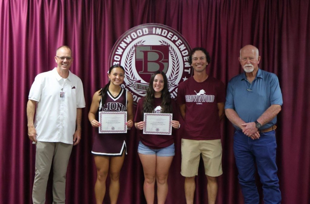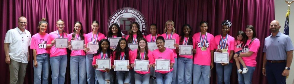The Varsity Lady Lions, coached by Chelsy Lipsey, who was named TGCA Track and Field Coach of the Year, were crowned the UIL Conference 4A Track and Field State Champions, marking the first ever state title for the Lady Lions program and the first for any Brownwood High School team since 1986. Honorees are pictured below with BISD Athletic Director Mitch Moore, Coach Lipsey, Coach Hohertz, and BISD Trustee Codie Smith.