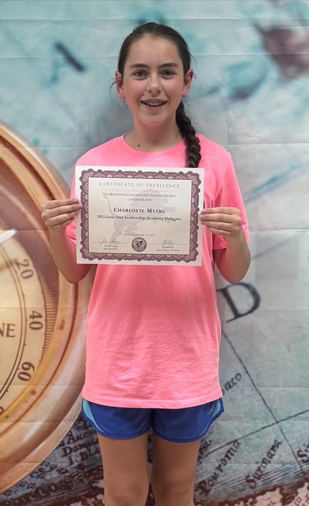 Nominated by her teacher Amber Shipman, Charlotte was chosen as a 2025 Lone Star Leadership Academy delegate. Charlotte’s selection was based on her outstanding academic success, demonstrated leadership ability, and involvement in school and community activities.