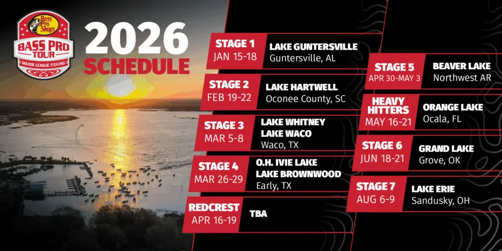 “Our 2026 schedule showcases everything we love about the Bass Pro Tour – challenging new waters, high-stakes competition and a roster of the most accomplished anglers in the sport,” said Kathy Fennel, MLF Executive Vice President & General Manager. “We’re especially excited about several new stops on the Tour next season, and working on some exciting developments for REDCREST 2026, which we’ll be announcing soon. There’s never been a better time to be a fan of the sport of professional bass fishing.”