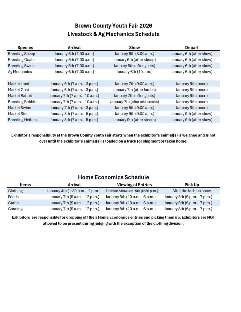 2026 Brown County Youth Fair Schedule Posted By: Derrick Stuckly January 1, 2026 @ 12:40 am Local News Tweet Share Reddit +1 Pocket LinkedIn Tweet Share Reddit +1 Pocket LinkedIn