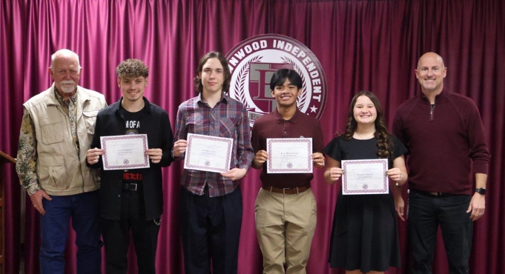 BHS Jazz Band students were recognized for their accomplishments qualifying for All-Region Jazz Band and/or qualifying for Area. BHS Jazz Band students are pictured below with BISD Trustee Tim Wilson and BHS Band Director Jason Jones.