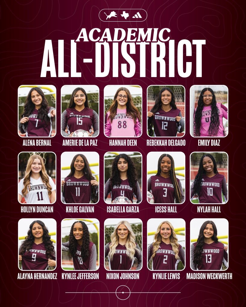 Lady Lions who earned academic all-district status were Alena Bernal, Amerie De La Paz, Hannah Deen, Rebekkah Delgado, Emily Diaz, Hollyn Duncan, Khloe Galvan, Isabella Garza, Nylah Hall, Icess Hall, Alayna Hernandez, Kynlee Jefferson, Nixon Johnson, Kynlie Lewis, and Madison Weckwerth.