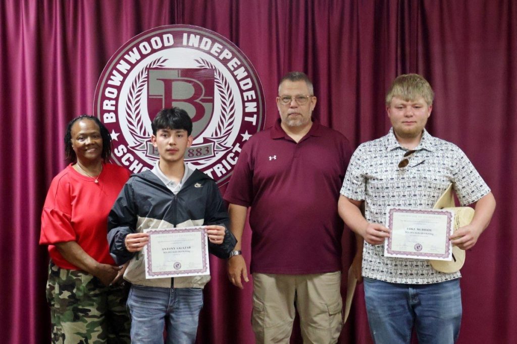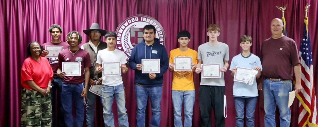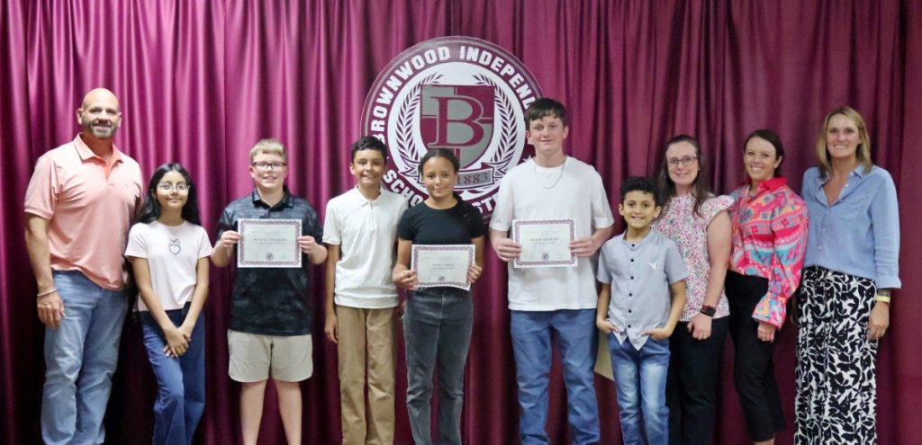 Robotics Coach Ms. Amber Shipman took two teams to competition, with one team making it to finals and placing 4th overall. That team consisted of 6th graders Quan Dao, Ryder Shifflett, Aisley Smith, and Bentley Windham. Honorees are pictured above with BISD Trustee Codie Smith, Ms. Shipman, Coggin Elementary Principal Kassie Parrish and Coggin Elementary Dean of Students Brec Espinoza.