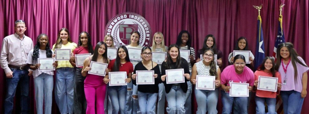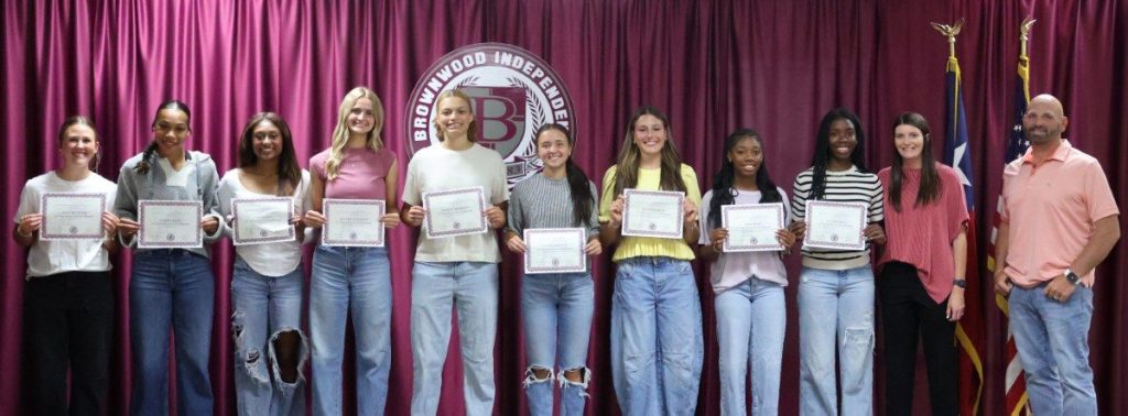 The BHS Varsity Lady Lions Soccer team, led by Coach Alexis Walker, were District 5-4A District Co-Champions, Bi-District Champions, Area Champions, and Regional Semi-Finalists. They finished their season with 15 all-district accolades, including 7 superlative honors and 5 academic all-state honors. Honorees are pictured above with BISD Trustee Posey and Coach Walker.