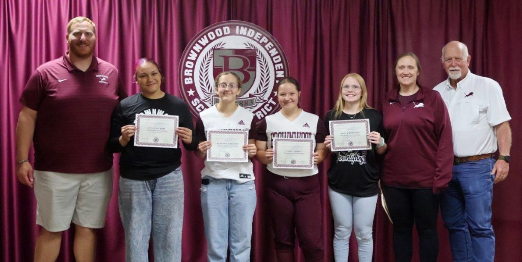 BHS Lady Lions Powerlifting competitors were recognized for their season accomplishments, including sixteen who qualified for Regionals and one who qualified for State. Honorees are pictured above with Coach Lee Grimes, Coach Kristen Grimes, and BISD Trustee Tim Wilson.